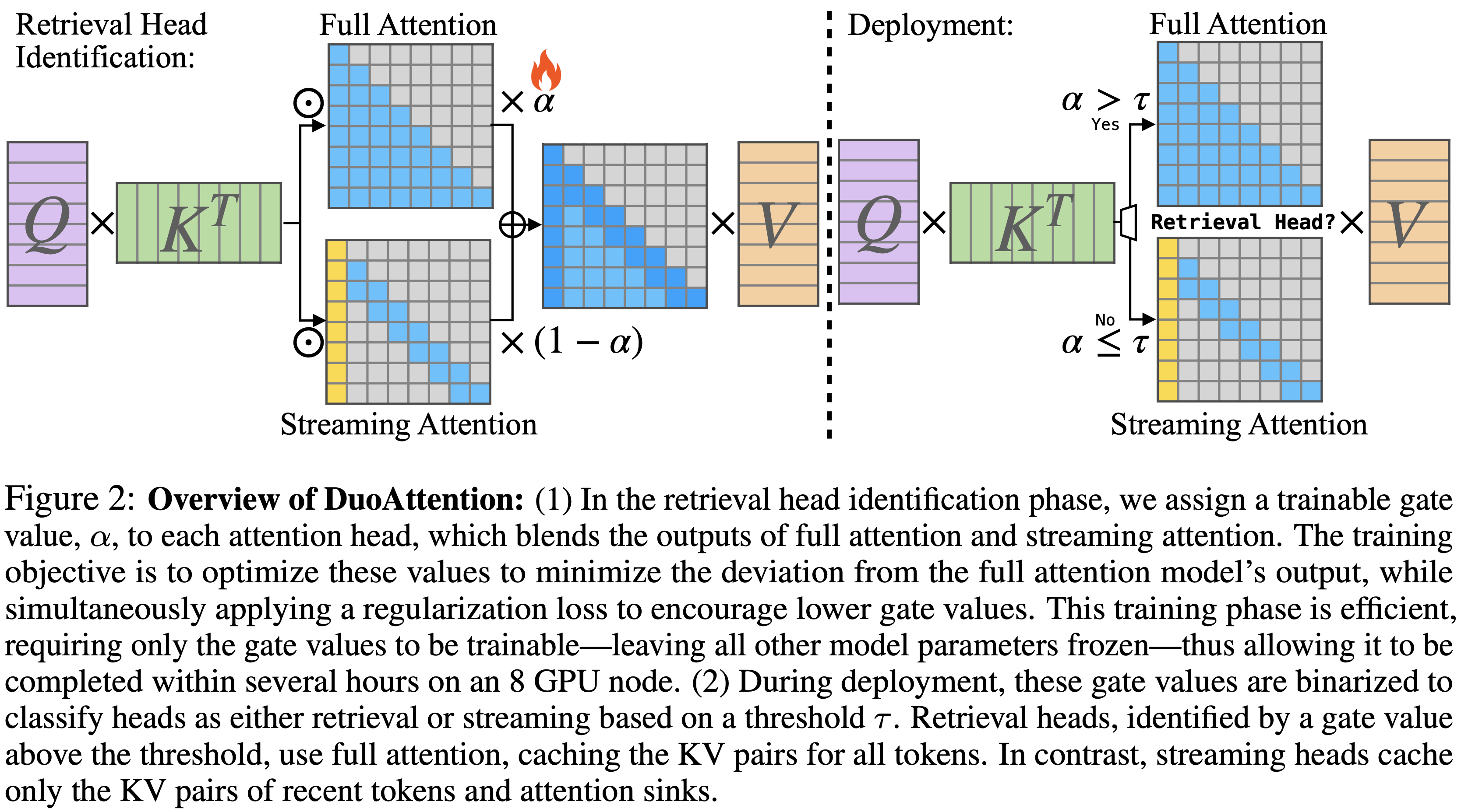 • 基于 Retrieval Heads 和 Streaming Heads 的二分法,论文提出了 DuoAttention