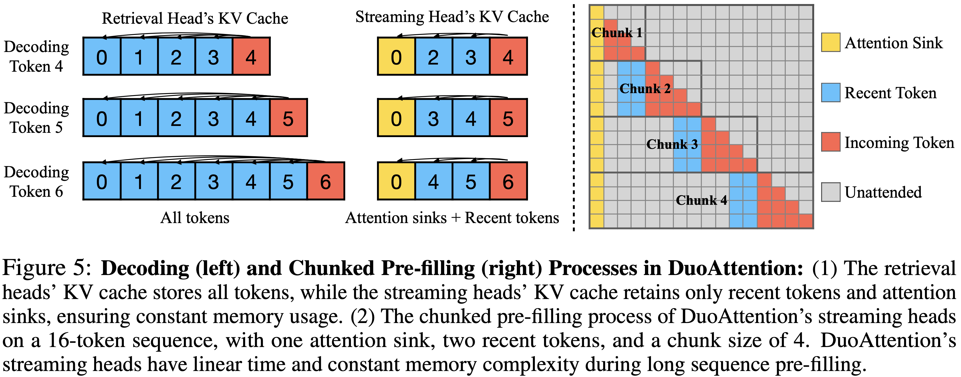 • 一个用于 Streaming Heads 的恒定 KV 缓存,仅存储 Attention Sinks 和最近的 Token