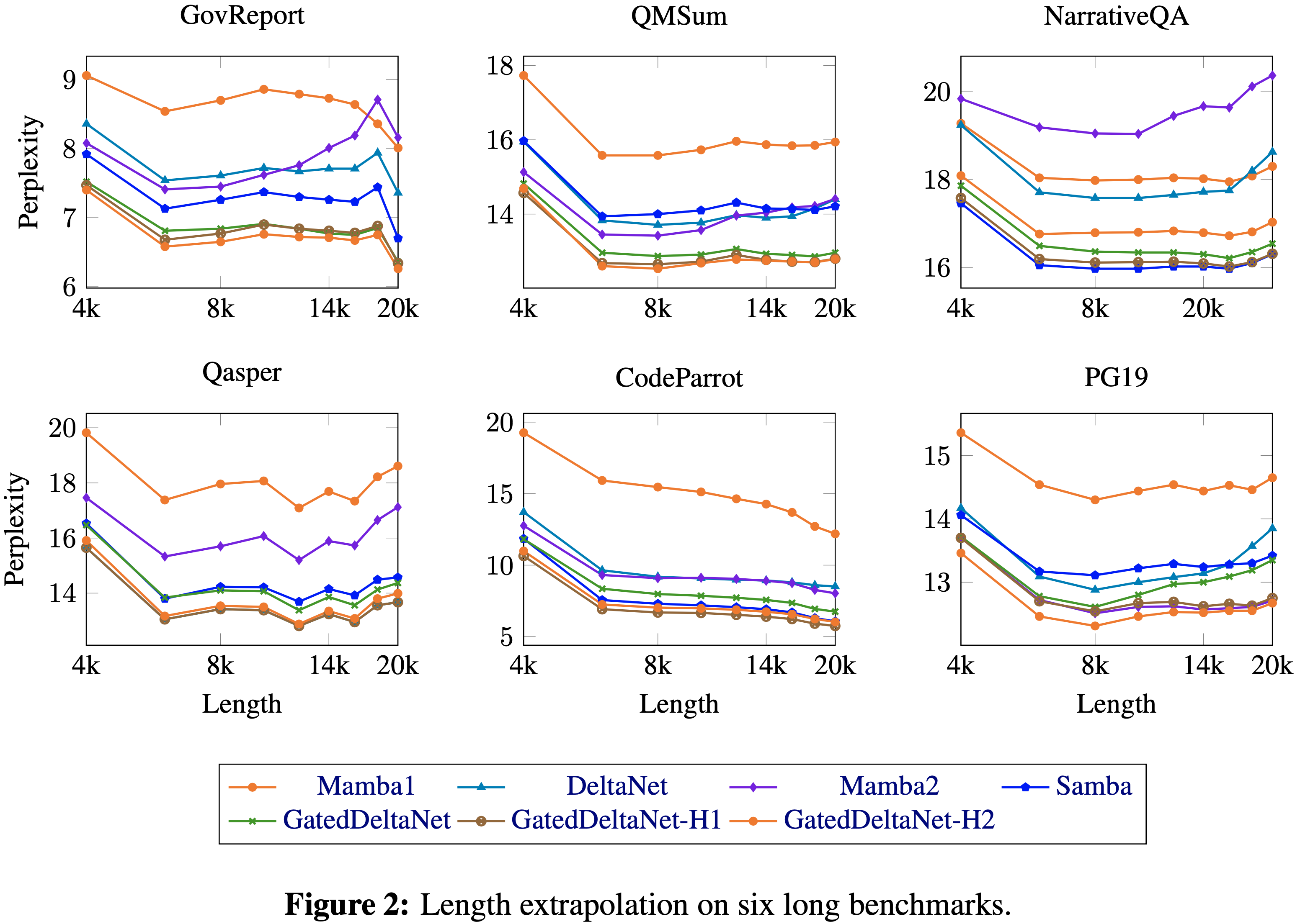 • 论文还堆叠了 Mamba2、GatedDeltaNet 和 SWA,产生了 GatedDeltaNet-H2
