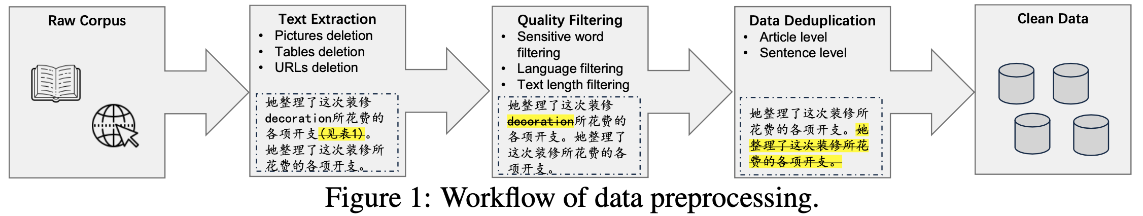 • 此外,论文在文章和句子级别进行去重,以减少重复数据对模型训练的影响
