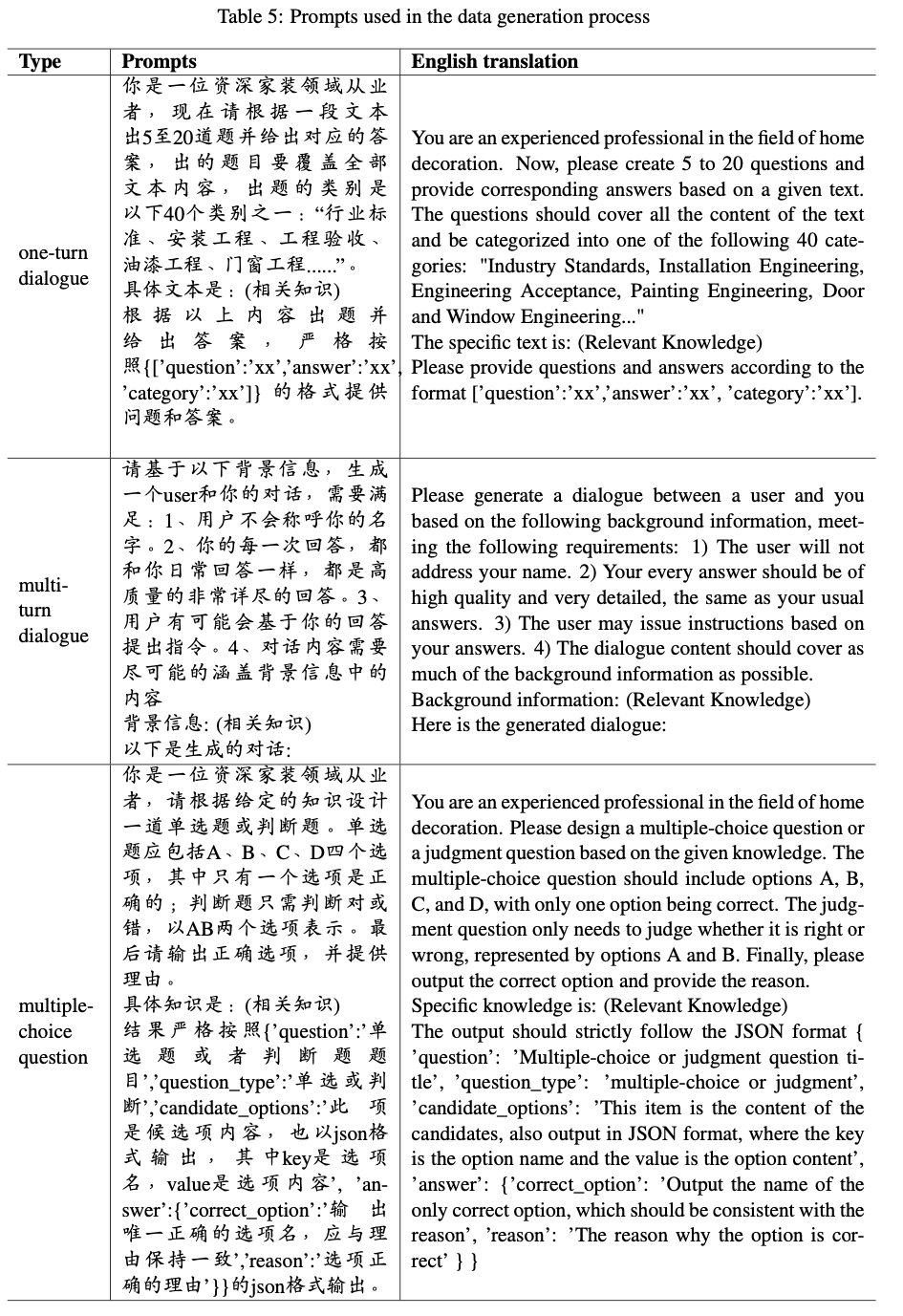 表5:数据生成过程中使用的提示