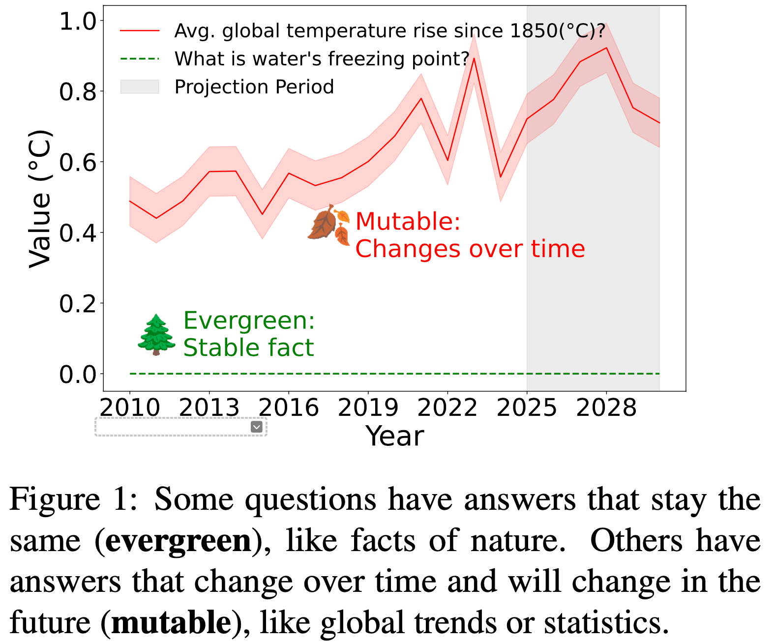 - 未充分探索 ,同时确是影响问题难度的关键因素是其是否为常青(evergreen)或可变(mutable)问题(2024a),即正确答案是否随时间稳定(如图 1 所示)