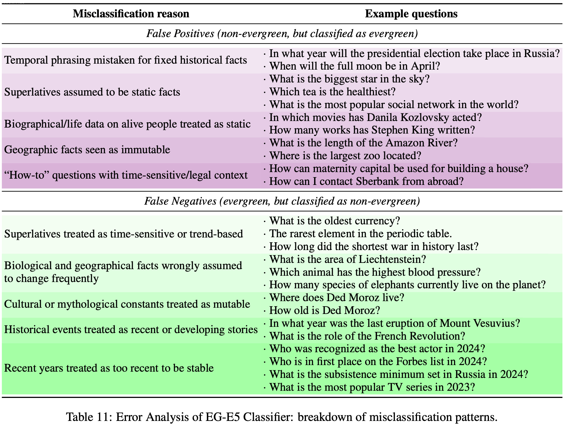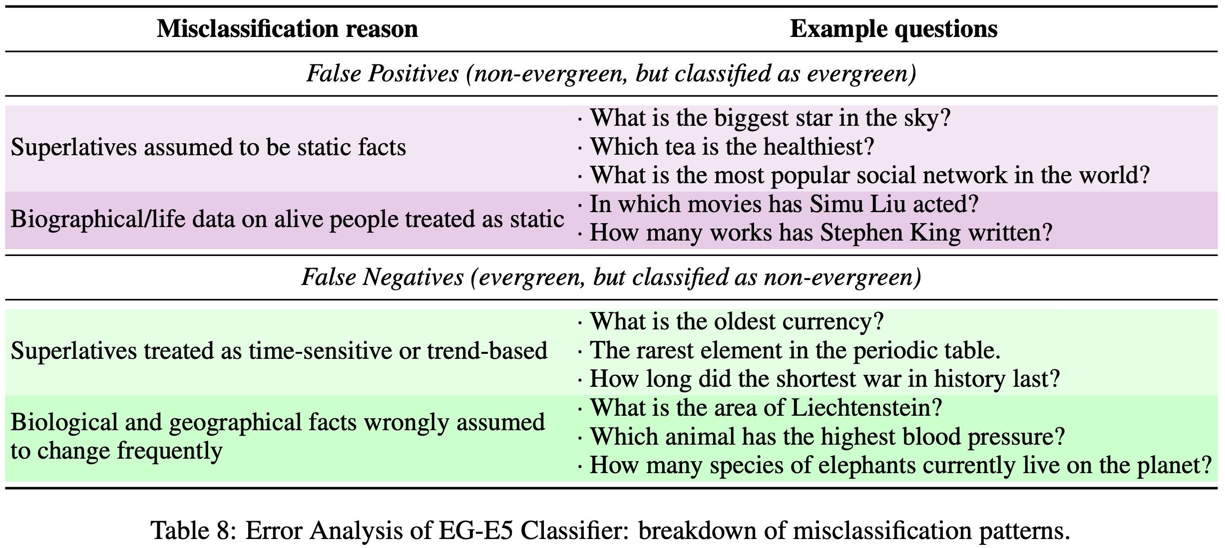 - 此外,论文还开发了 EG-E5 ,一个轻量级的,截止到当前最优的分类器,用于识别常青问题