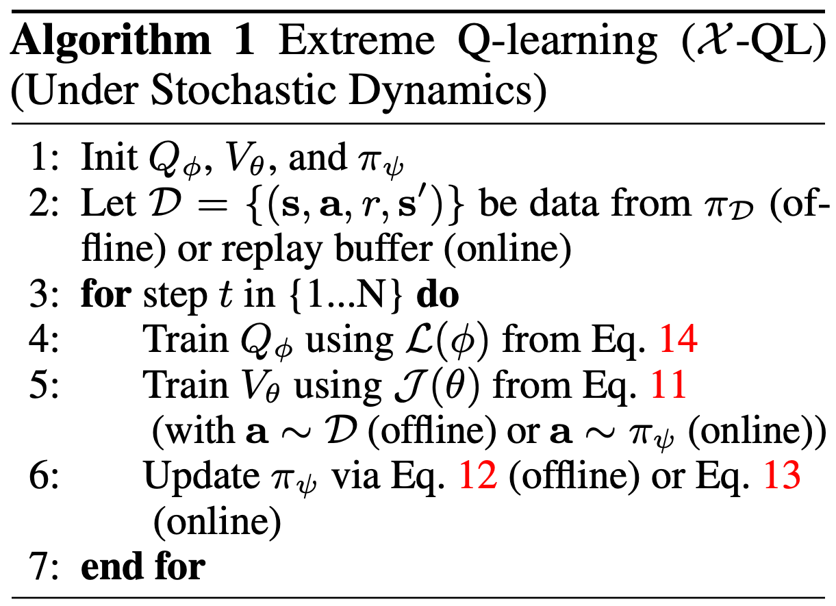 • 先使用策略评估方法学习一个Q值 \(Q_\phi^\pi\) (最小化贝尔曼误差即可),然后在数据集上评估该Q值的累计值