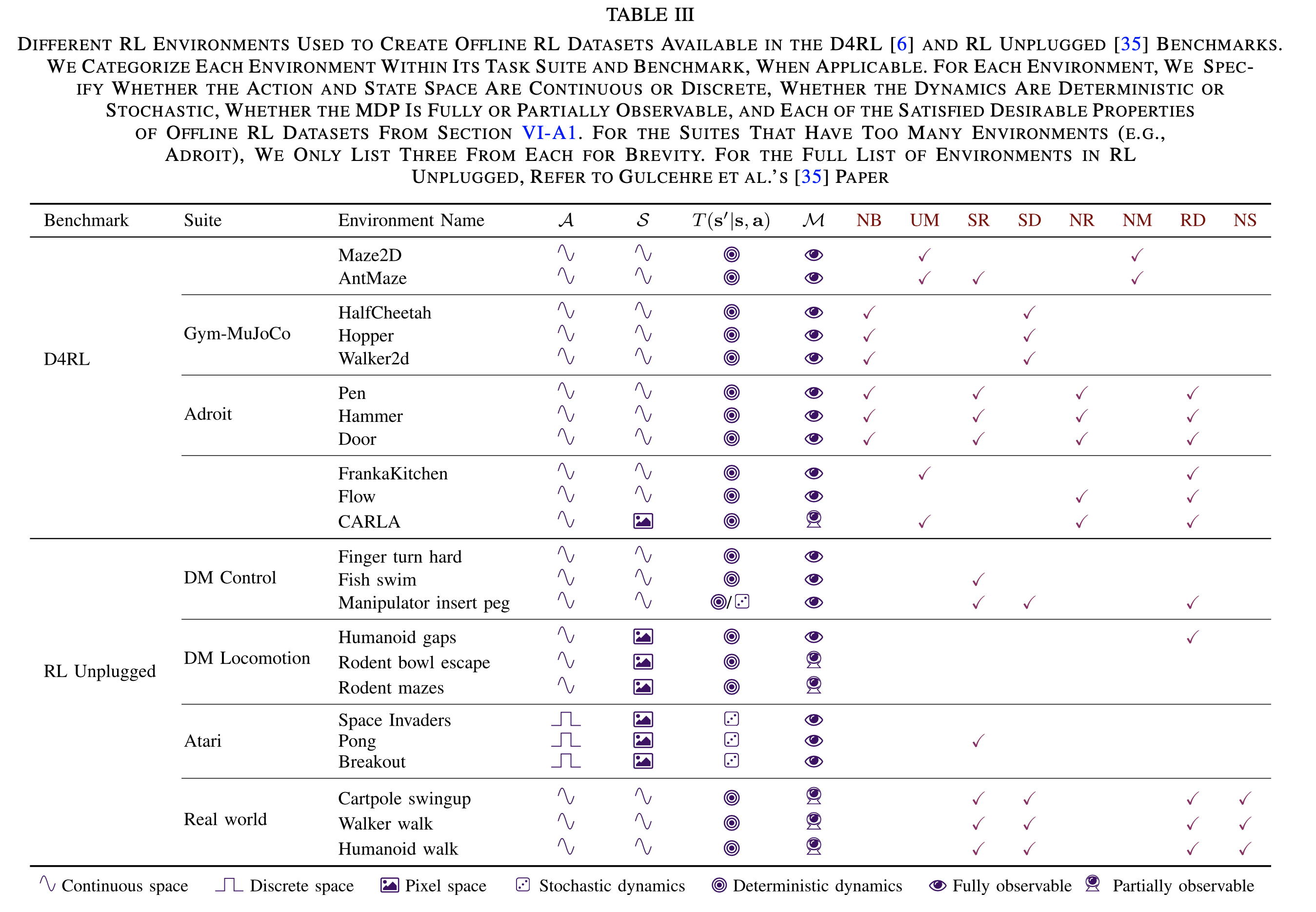 • Non-Markovian Behavior Policies (NM) :非马尔可夫行为策略,一般出现在人类Agent或者手动工程控制中?不遵循马尔可夫性?【TODO:待补充】
