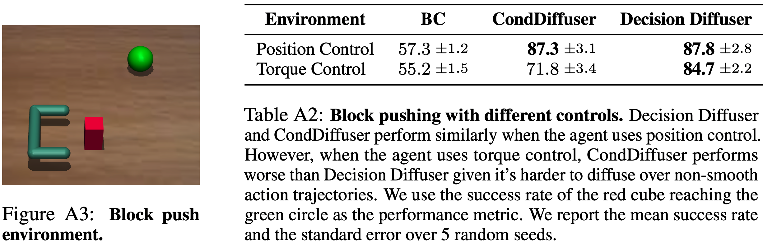 - 在扭矩控制(torque control)模式下,Decision Diffuser 表现明显优于 CondDiffuser