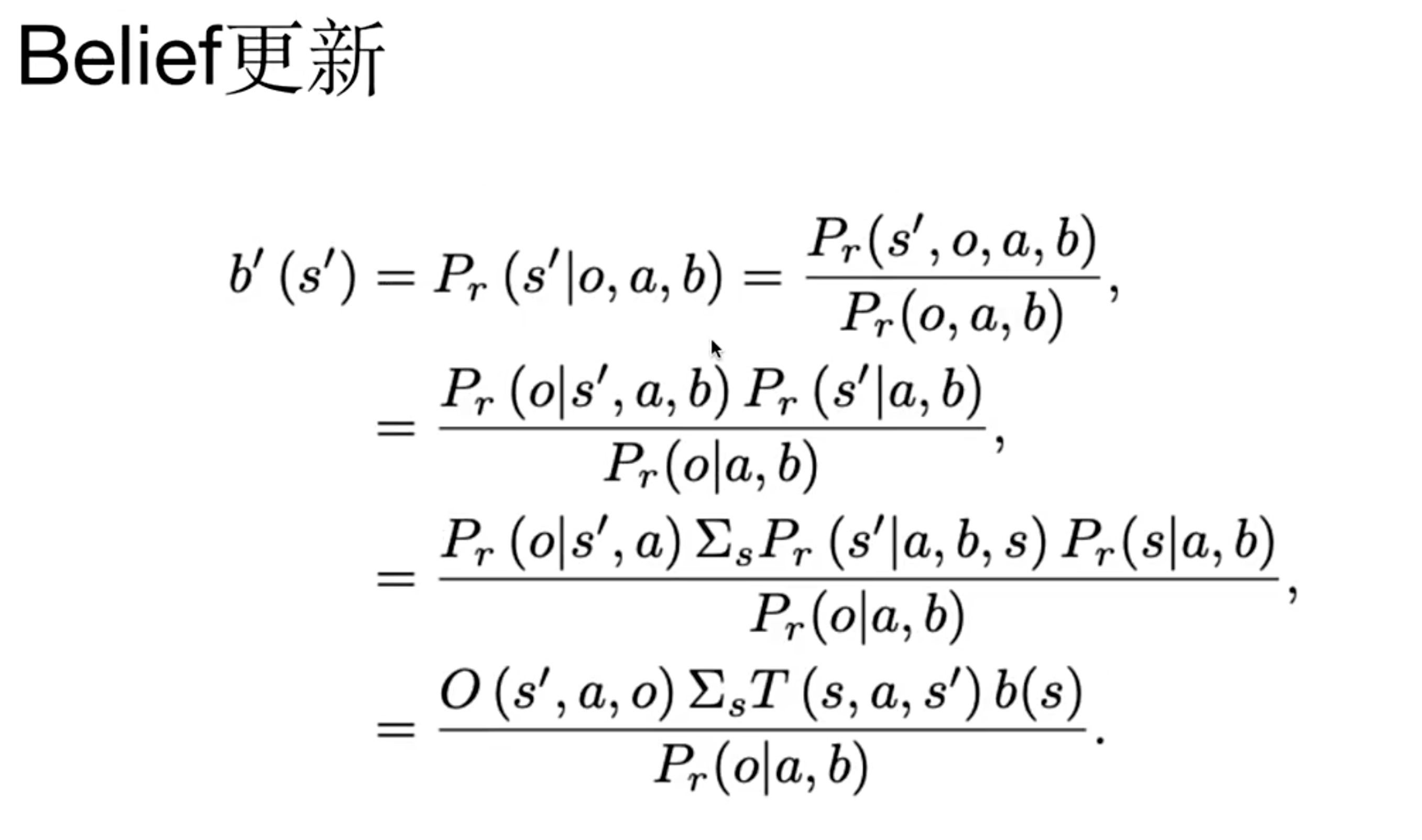 - Belief 更新公式 :