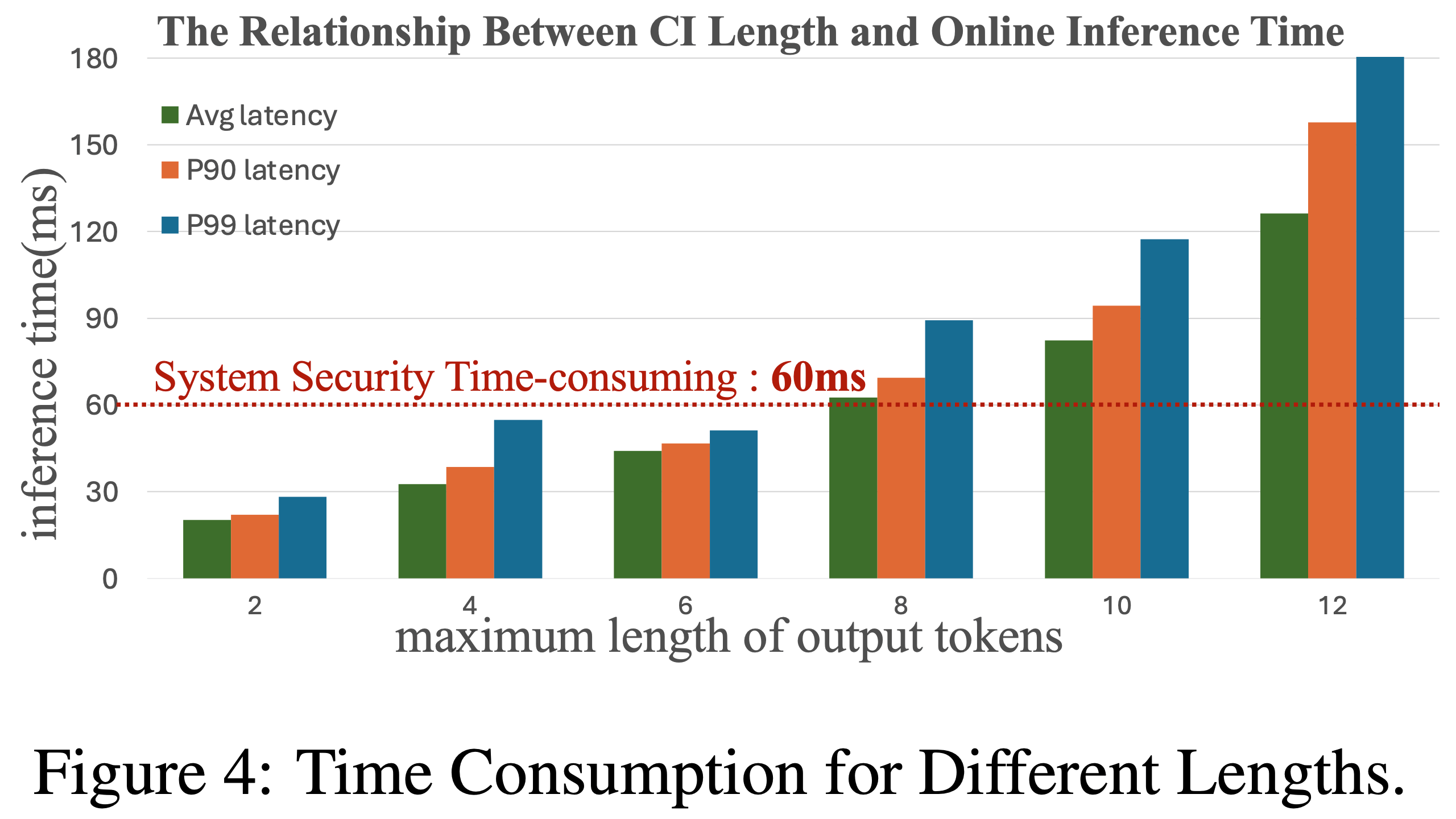 • 图4显示了实时在线推理中不同输出长度的时间消耗。CIs 平均词数为3,确保满足安全阈值。论文开发了专用GPU集群(数百台L40),量化模型至FP8精度,每台L40支持约30 QPS,缓存命中率达65%,显著降低了计算成本